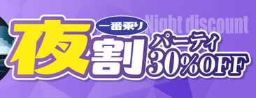 ほぼ毎週末、金曜の夜と土曜に開催される人気イベントです。パーティチャット入室時、最初の10分が半額、その後20分は33%OFF、合計30分間お得に楽しめます。